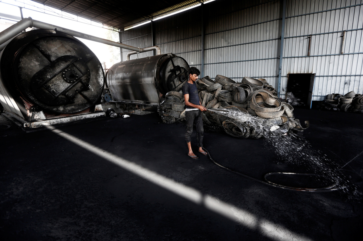 At a second plant, where a teenager sorted through a pile of odd-sized tires, plant supervisor Manoj Kumar said he was producing oil mainly used as tar for road construction.