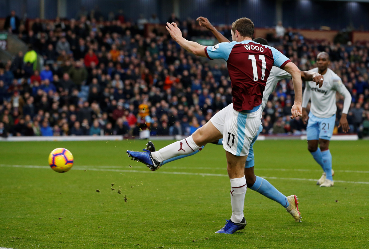 The Clarets took the lead in the 15th minute when Wood fired home after Ashley Barnes headed into his path. New Zealander Wood has now scored five goals in four appearances against West Ham in the Premier League.