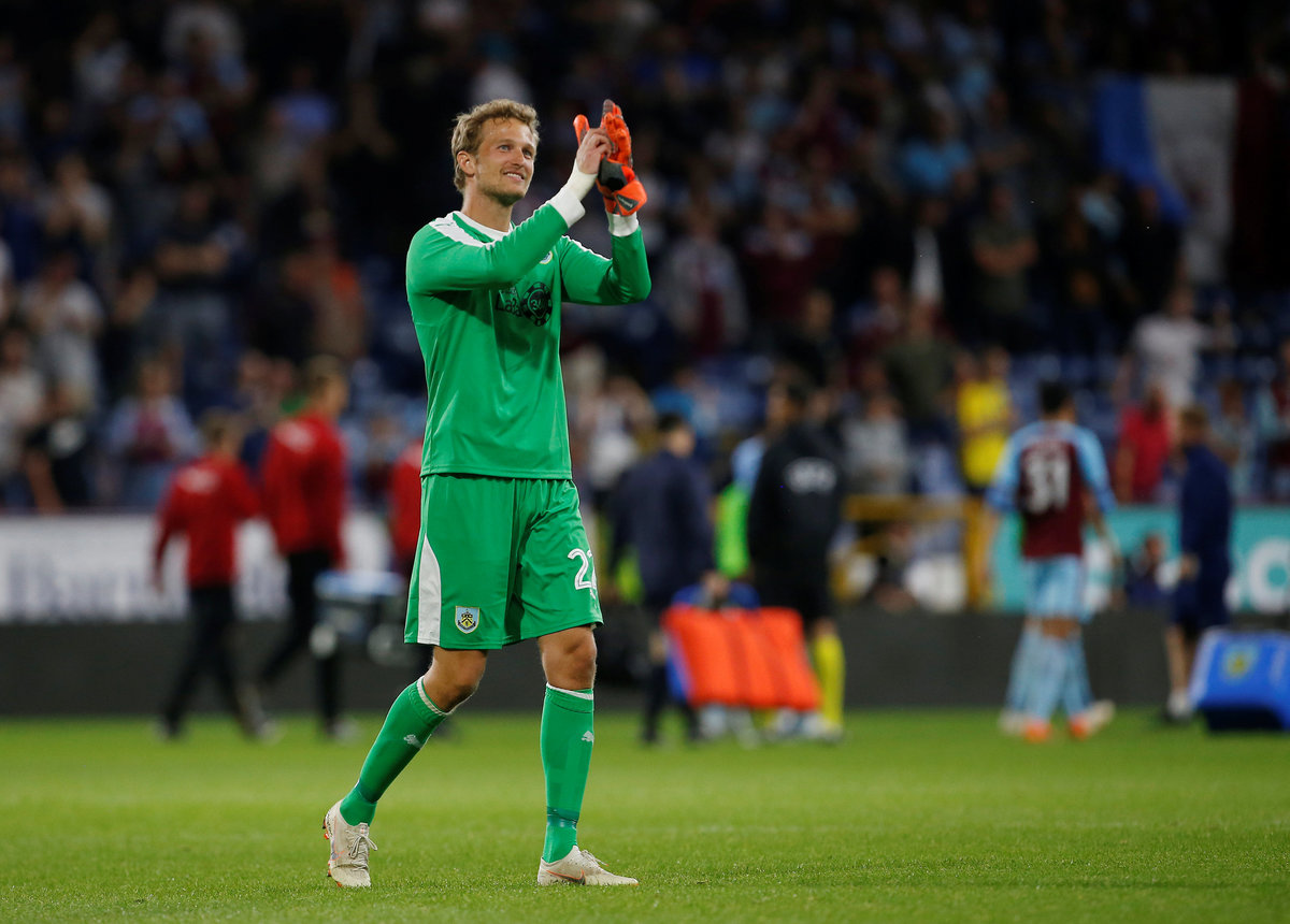 Soccer Football - Europa League - Second Qualifying Round Second Leg - Burnley v Aberdeen - Turf Moor, Burnley, Britain - August 2, 2018 Burnley's Anders Lindegaard celebrates after the match Action Images via Reuters/Craig Brough