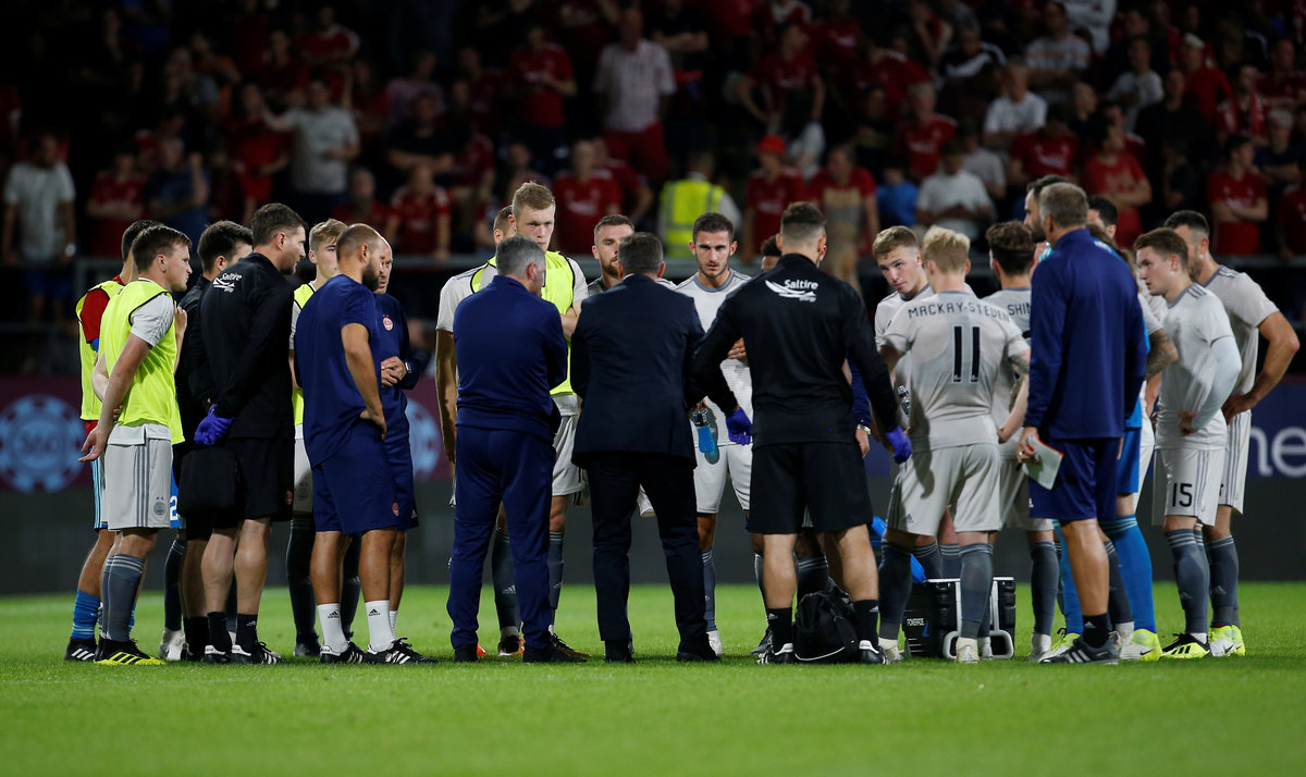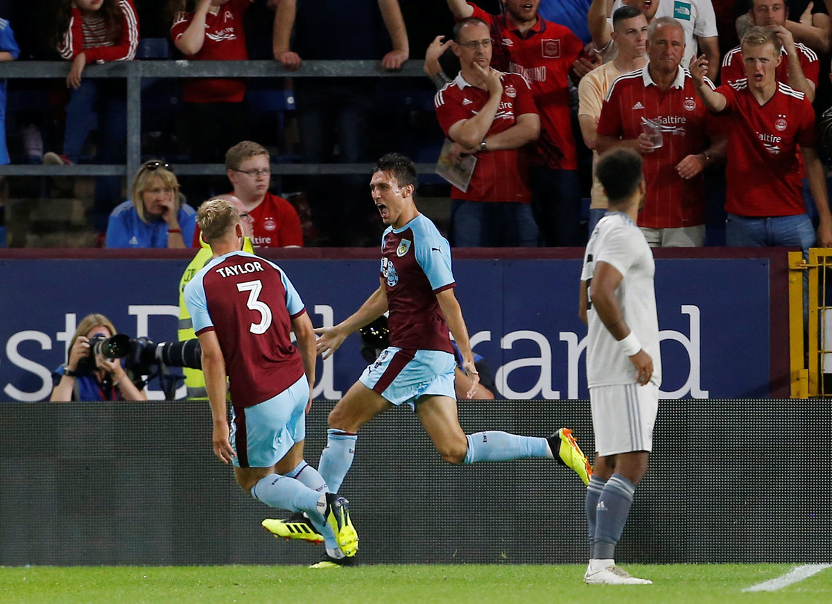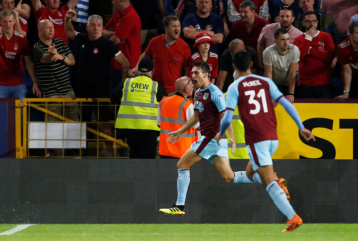 Soccer Football - Europa League - Second Qualifying Round Second Leg - Burnley v Aberdeen - Turf Moor, Burnley, Britain - August 2, 2018 Burnley's James Tarkowski reacts Action Images via Reuters/Craig BroughSoccer Football - Europa League - Second Qualifying Round Second Leg - Burnley v Aberdeen - Turf Moor, Burnley, Britain - August 2, 2018 Burnley's Ashley Barnes scores their third goal from the penalty spot Action Images via Reuters/Craig BroughSoccer Football - Europa League - Second Qualifying Round Second Leg - Burnley v Aberdeen - Turf Moor, Burnley, Britain - August 2, 2018 Aberdeen manager Derek McInnes talks to their players during the break in extra time Action Images via Reuters/Craig BroughSoccer Football - Europa League - Second Qualifying Round Second Leg - Burnley v Aberdeen - Turf Moor, Burnley, Britain - August 2, 2018 Burnley's Jack Cork celebrates scoring their second goal Action Images via Reuters/Craig BroughSoccer Football - Europa League - Second Qualifying Round Second Leg - Burnley v Aberdeen - Turf Moor, Burnley, Britain - August 2, 2018 Burnley's Jack Cork scores their second goal Action Images via Reuters/Craig BroughSoccer Football - Europa League - Second Qualifying Round Second Leg - Burnley v Aberdeen - Turf Moor, Burnley, Britain - August 2, 2018 Burnley's Anders Lindegaard reacts Action Images via Reuters/Craig BroughSoccer Football - Europa League - Second Qualifying Round Second Leg - Burnley v Aberdeen - Turf Moor, Burnley, Britain - August 2, 2018 Burnley's Jack Cork shoots at goal Action Images via Reuters/Craig BroughSoccer Football - Europa League - Second Qualifying Round Second Leg - Burnley v Aberdeen - Turf Moor, Burnley, Britain - August 2, 2018 Aberdeen's Joe Lewis in action Action Images via Reuters/Craig Brough