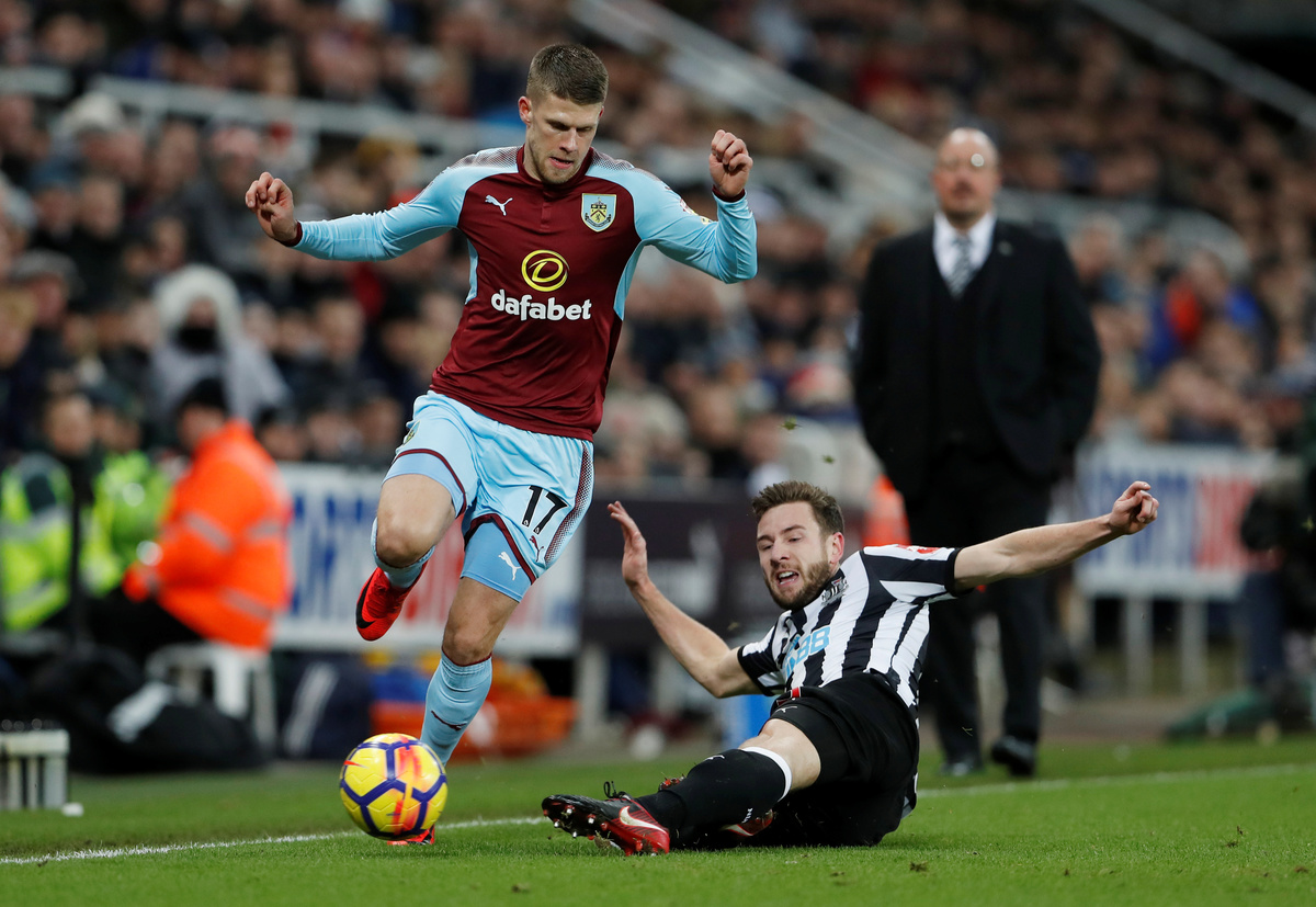 Soccer Football - Premier League - Newcastle United vs Burnley - St James' Park, Newcastle, Britain - January 31, 2018 Newcastle United's Mikel Merino in action with Burnley's Ashley Westwood REUTERS/Scott Heppell