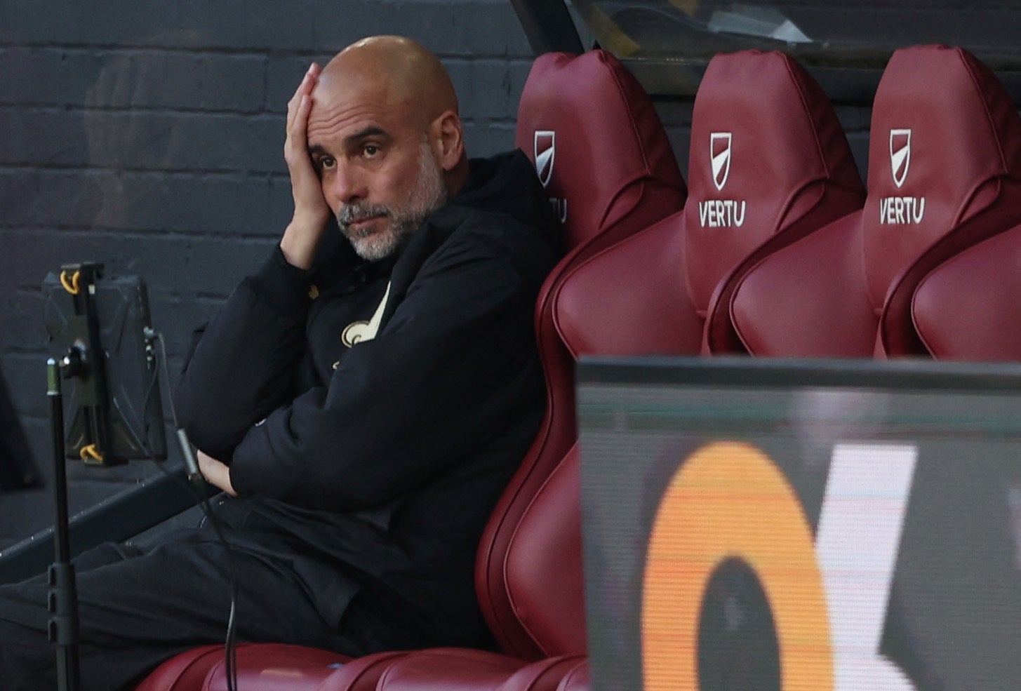 - Pep Guardiola denied any frustration despite appearing furious at missed chances