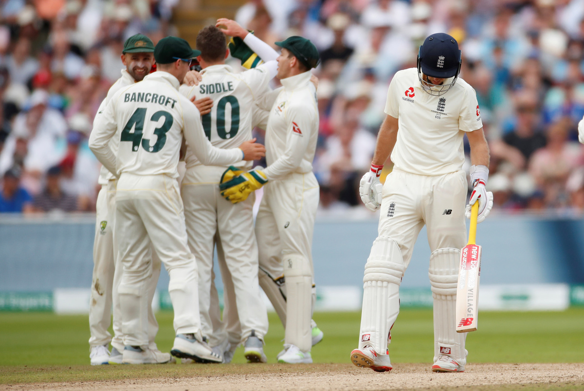 Cricket - Ashes 2019 - First Test - England v Australia - Edgbaston, Birmingham, Britain - August 2, 2019 England's Joe Root is caught out by Australia's Peter Siddle Action Images via Reuters/Andrew BoyersCricket - Ashes 2019 - First Test - England v Australia - Edgbaston, Birmingham, Britain - August 2, 2019 Australia's James Pattinson reacts after England's Rory Burns hits a four Action Images via Reuters/Andrew BoyersCricket - Ashes 2019 - First Test - England v Australia - Edgbaston, Birmingham, Britain - August 2, 2019 General view of the shirt of Australia's Matthew Wade Action Images via Reuters/Carl RecineCricket - Ashes 2019 - First Test - England v Australia - Edgbaston, Birmingham, Britain - August 2, 2019 England's Joe Root looks dejected after losing his wicket as the Australia players celebrate Action Images via Reuters/Andrew BoyersCricket - Ashes 2019 - First Test - England v Australia - Edgbaston, Birmingham, Britain - August 2, 2019 Australia's Peter Siddle celebrates taking the wicket of England's Joe Root Action Images via Reuters/Carl RecineCricket - Ashes 2019 - First Test - England v Australia - Edgbaston, Birmingham, Britain - August 2, 2019 England's Joe Root is caught out by Australia's Peter Siddle Action Images via Reuters/Andrew BoyersCricket - Ashes 2019 - First Test - England v Australia - Edgbaston, Birmingham, Britain - August 2, 2019 England's Joe Root hits a four Action Images via Reuters/Andrew BoyersCricket - Ashes 2019 - First Test - England v Australia - Edgbaston, Birmingham, Britain - August 2, 2019 Australia's Steve Smith in action Action Images via Reuters/Andrew BoyersCricket - Ashes 2019 - First Test - England v Australia - Edgbaston, Birmingham, Britain - August 2, 2019 England's Rory Burns in action as he reaches his half century Action Images via Reuters/Andrew BoyersCricket - Ashes 2019 - First Test - England v Australia - Edgbaston, Birmingham, Britain - August 2, 2019 Australia's Nathan Lyon appeals against England's Joe Root Action Images via Reuters/Andrew Boyers