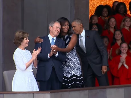 “It shocked me,” said Mr Bush, who recalled the reaction to a photo of him hugging Ms Obama at the opening of the National Museum of African American History and Culture in Washington DC in 2016.