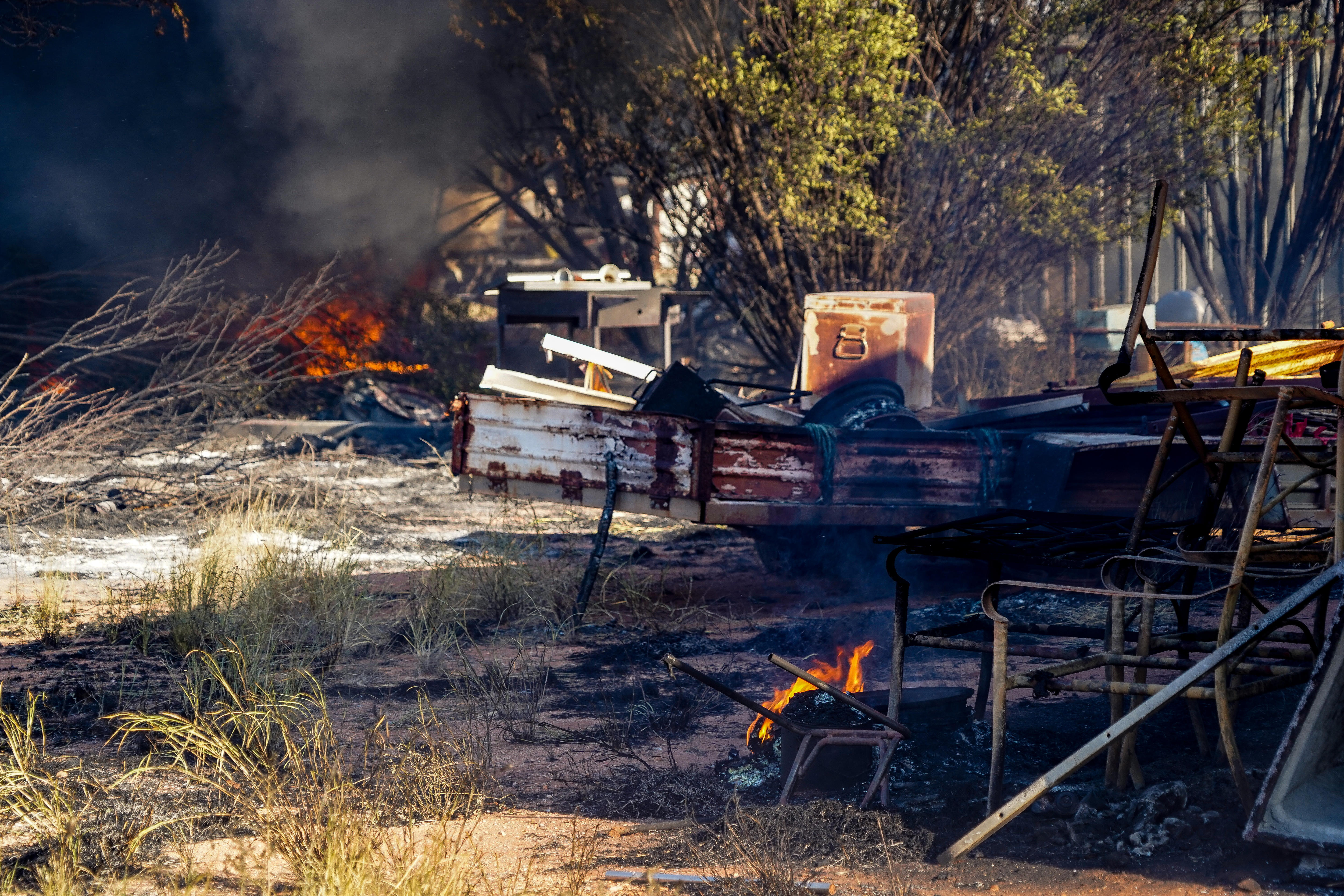More than a dozen vehicles and a number of other structures were burnt out by the blaze which has since been brought under control and the alert level downgraded.