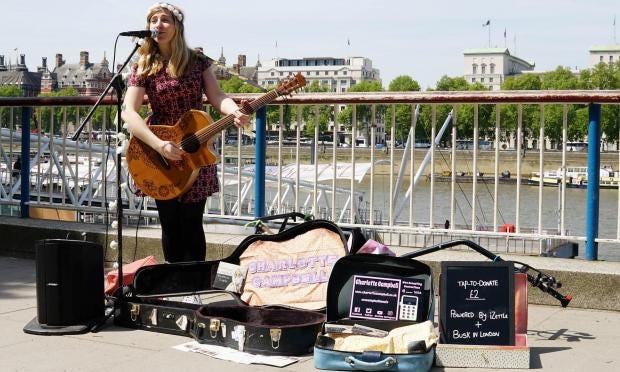 Charlotte Campbell, a full-time busker who has been helping trial the technology, said: “If street performers like myself don’t adapt to the cashless society we are edging towards, we’re at risk of becoming a dying art.