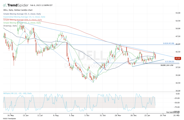 Traders are stuck between both levels now. They should keep a close eye on $39 on the downside and $43 on the upside if they are active in Dell stock.