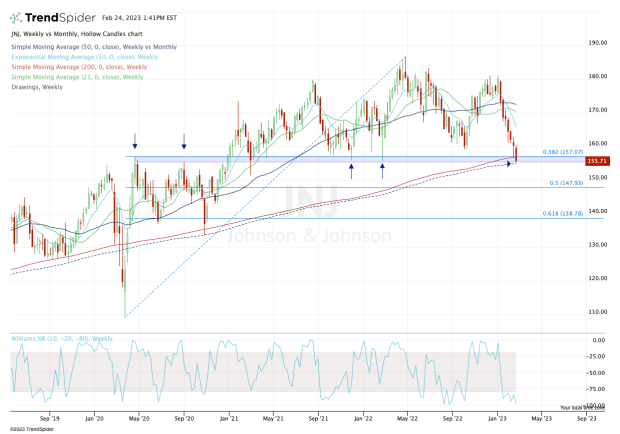 The bottom line: There’s no guarantee Johnson & Johnson stock will find support near current levels. But when we marry the fundamentals and the technicals, it’s clear we could get a bounce out of the $155 zone.