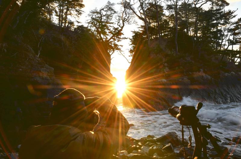 ISHINOMAKI, Miyagi -- An amazing sunrise was seen through a crack in boulder at Cape Kamiwarizaki, which is located on the border between Ishinomaki and Minamisanriku in Miyagi Prefecture, on Friday.