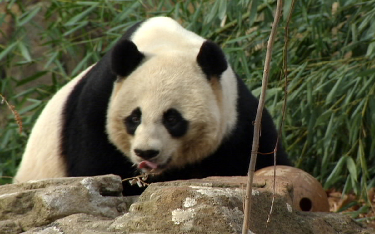 Breeding programs are key to efforts to reintroduce pandas into the wild. Thanks to reforestation to expand habitats in which the species can survive, pandas have been reclassified from "endangered" to "vulnerable" by the International Union for the Preservation of Nature. There are an estimated 1,800 giant pandas in the wild.