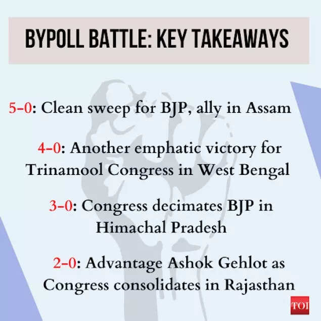 NEW DELHI: The results of the bypoll battle are out. While it is a mixed bag for both the BJP and the Congress, Mamata Banerjee’s Trinamool Congress has once again emerged as a clear winner.