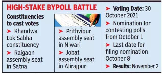 BHOPAL: On Tuesday, bypolls for one parliamentary and three assembly constituencies across Madhya Pradesh were announced on October 30 by the Election Commission (EC).