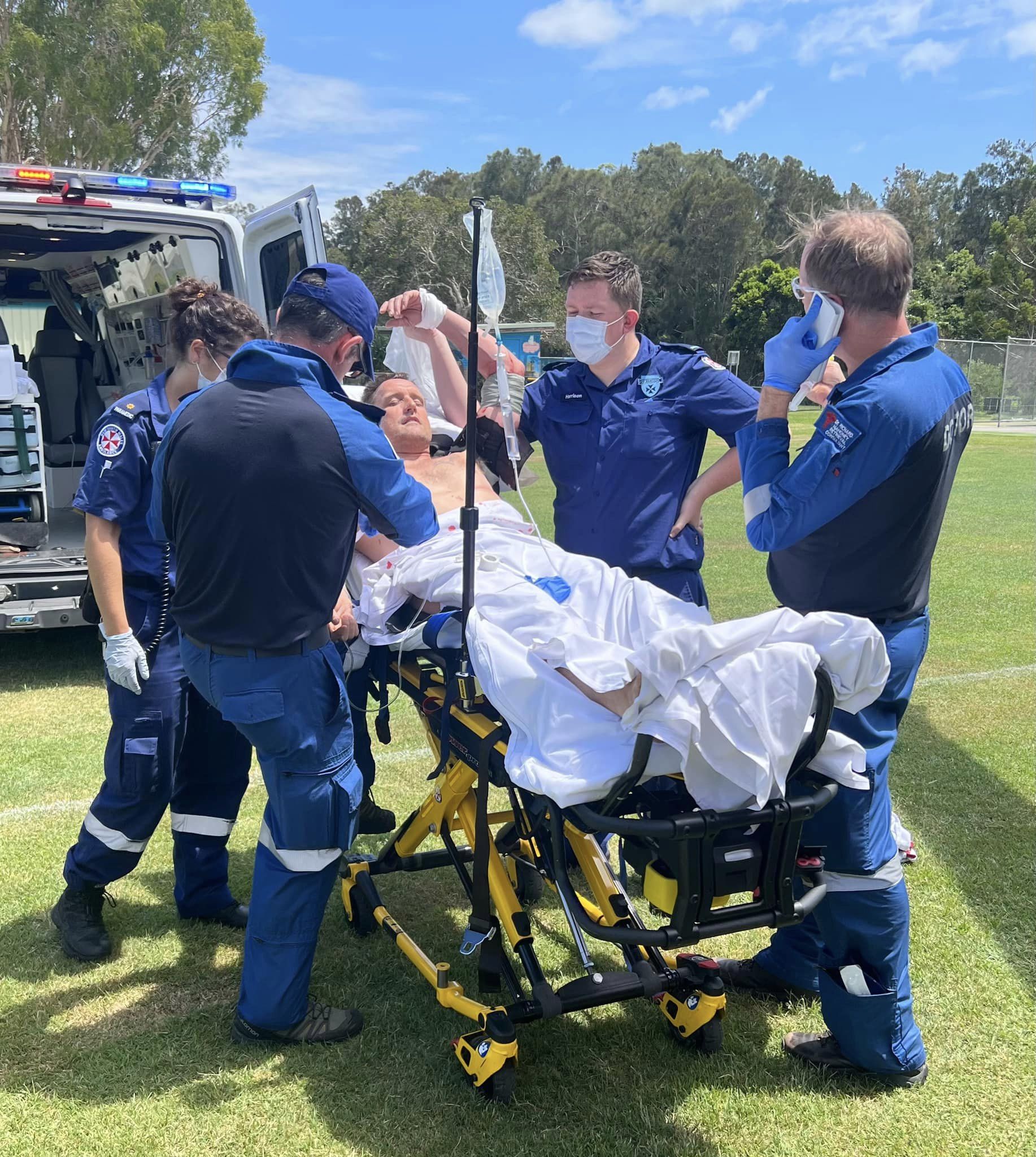 Mathew Cassidy was surfing with friends at Wategos Beach on Wednesday afternoon when he was hit by the fin of a loose longboard.