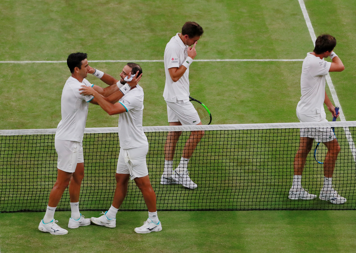 LONDON (Reuters) - Juan Sebastian Cabal and Robert Farah became the first Colombians to win a Grand Slam men's doubles title when they beat France's Nicolas Mahut and Edouard Roger-Vasselin 6-7(5) 7-6(5) 7-6(6) 6-7(5) 6-3 in a near five-hour epic at Wimbledon on Saturday.