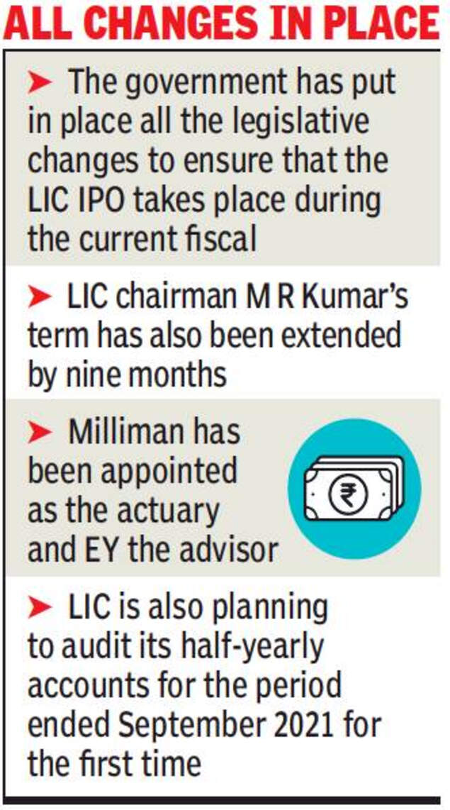 The government has put in place all the legislative changes and has also extended LIC chairman M R Kumar’s term by nine months.