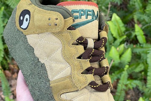 Leaks have revealed a naturalistic makeover for one of the most in-demand silhouettes of the moment, courtesy of CPFM’s mysterious founder and designer Cynthia Lu. A gritty rubber reminiscent of either mud or concrete makes up the sole, while the upper puffs out with quilted stitching and an oversized eyelet in mustard and sand-colored suede.