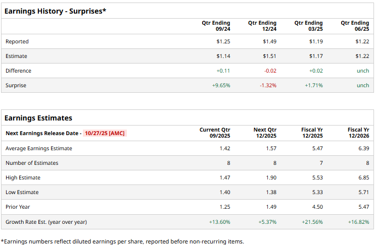 The tech giant is set to release its third-quarter results after the market closes on Monday, Oct. 27. Ahead of the event, analysts expect CDNS to deliver a profit of $1.42 per share, up 13.6% from $1.25 per share reported in the year-ago quarter. While the company missed the Street’s bottom-line estimates once over the past four quarters, it met or surpassed the projections on three other occasions.