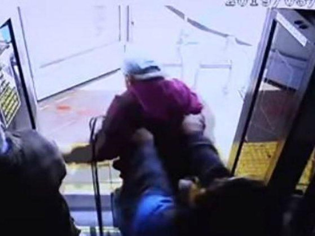 Surveillance video released a few days after the incident showed Fournier exiting the bus with a metal cart when Bishop shoved him from behind. He fell through the bus doors and fell face-first on the cart he was carrying.