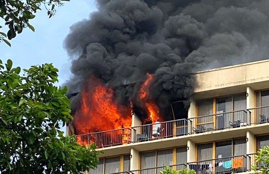 Flames leapt from balcony