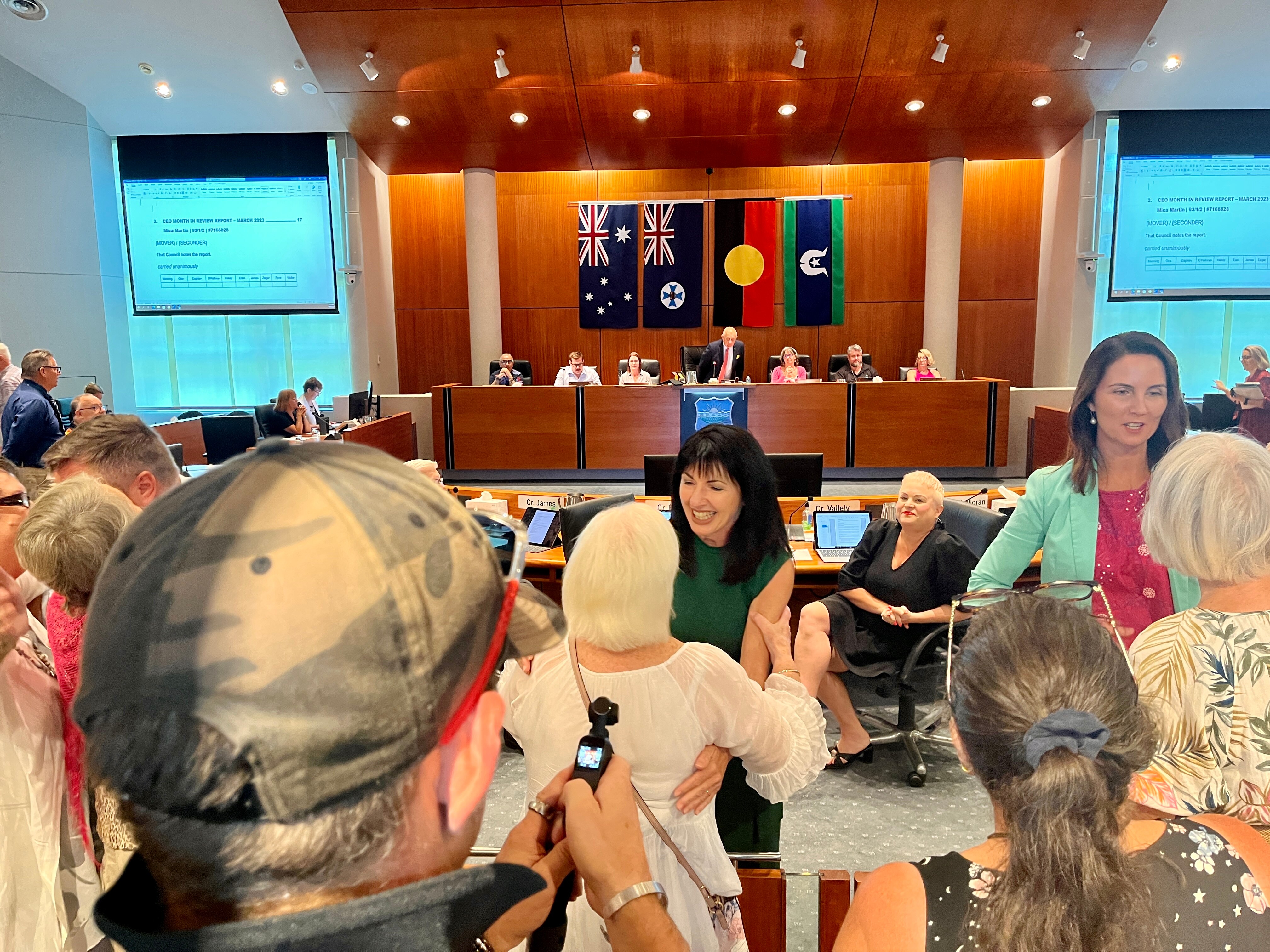Supporters cheered, clapped, and hugged one another as councillors voted in favour of reintroducing cash payments at several dumps as well as introducing ticket-style vending machines to facilitate cash payments, including at the Cairns Performing Arts Complex.