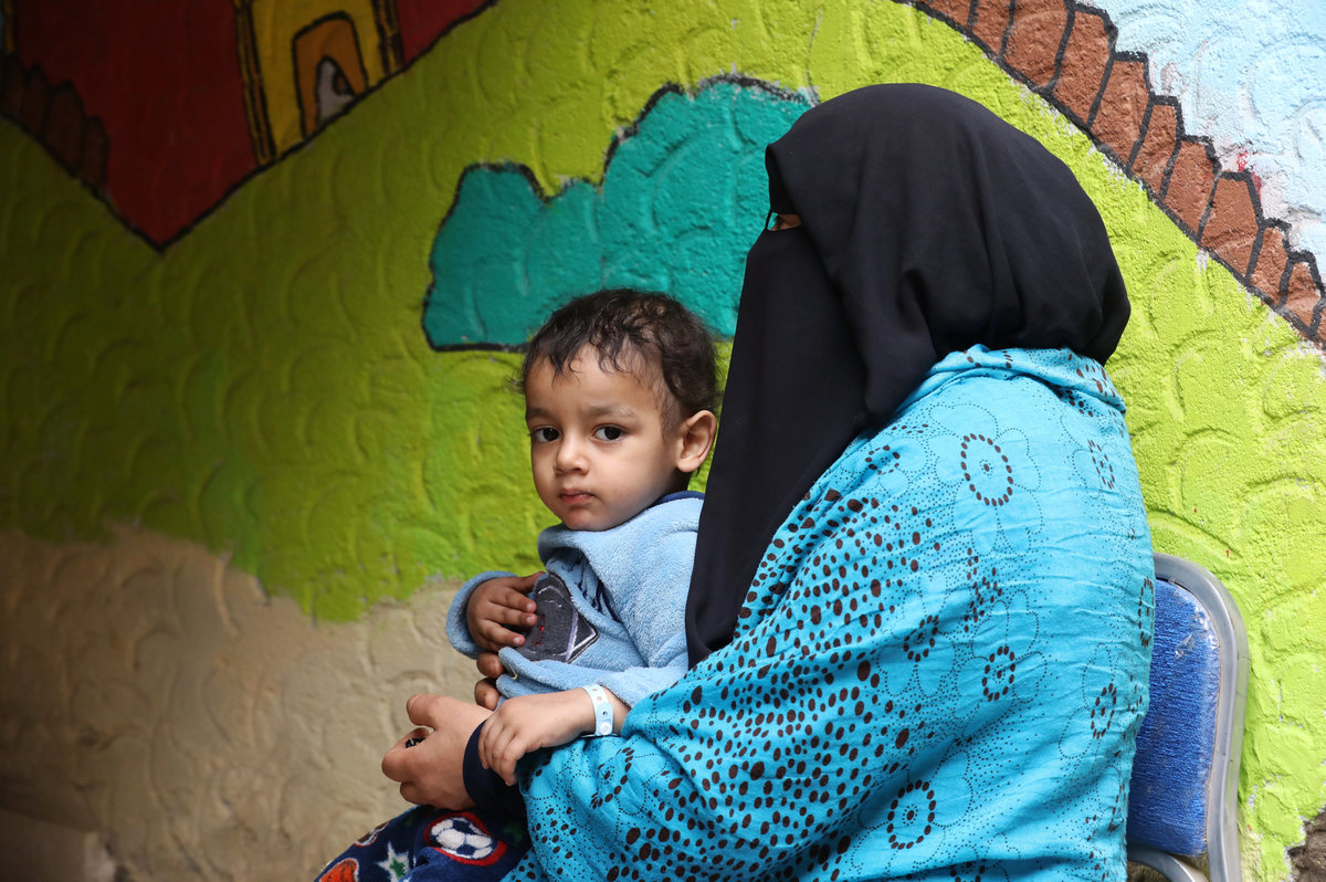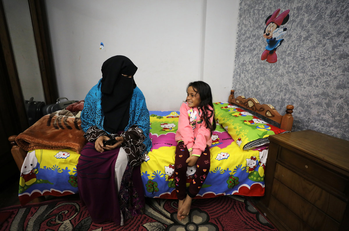 Israa, 9, who was diagnosed with cancer, sits with her mother and waits to get treatment during her stay at Zaza Ogaz's free housing for patients receiving treatment at a nearby cancer hospital, in Cairo, Egypt February 12, 2018. REUTERS/Mohamed Abd El Ghany