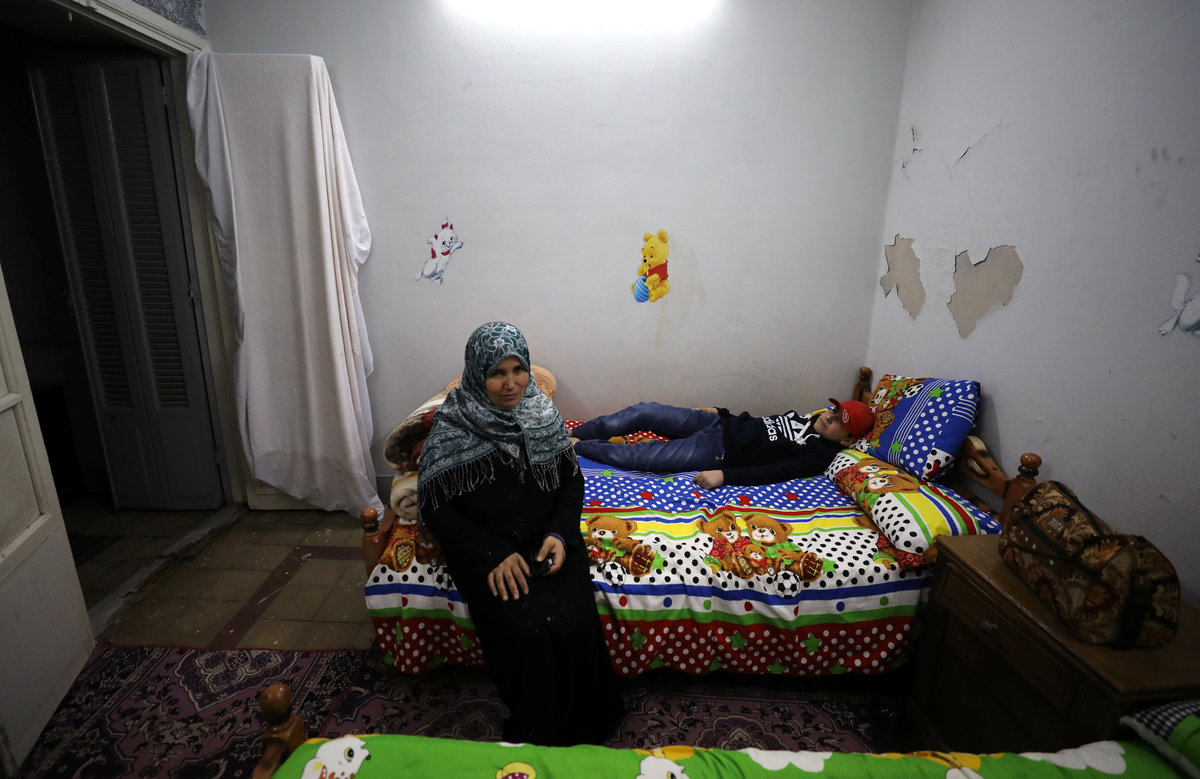 Abdelrahman, 14, who was diagnosed with cancer, and his mother stay at Zaza Ogaz's free housing for patients receiving treatment at a nearby cancer hospital, after arriving in Cairo from Al Arish in North Sinai, in Cairo, Egypt February 12, 2018. REUTERS/Mohamed Abd El Ghany