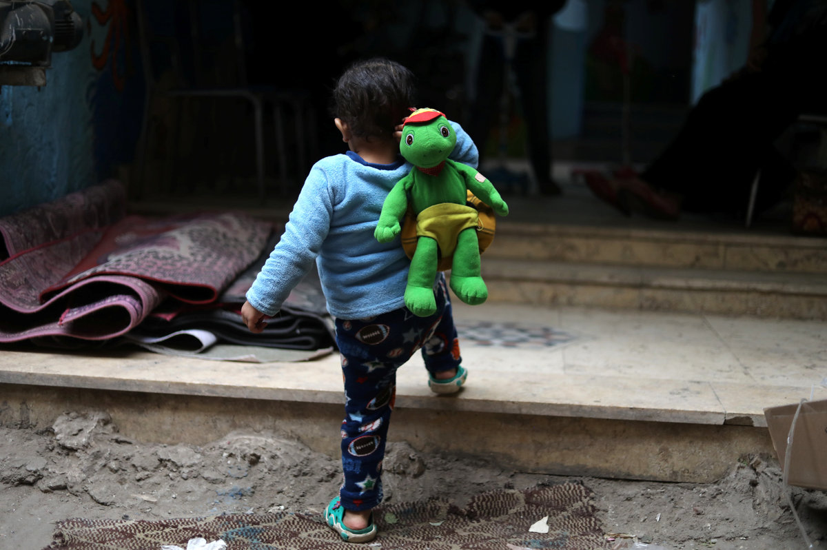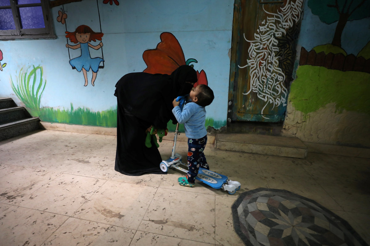 Abdelrahman, 14, Seif, 9, Retaj, 2, and Israa, 9, who were diagnosed with cancer, sit with their relatives at Zaza Ogaz's free housing for patients receiving treatment at a nearby cancer hospital, in Cairo, Egypt February 12, 2018. REUTERS/Mohamed Abd El GhanyYehia, 2, and Retaj, 2, who were diagnosed with cancer, play at Zaza's free housing for patients receiving treatment at a nearby cancer hospital, in Cairo, Egypt February 12, 2018. REUTERS/Mohamed Abd El GhanyYehia, 2, who was diagnosed with cancer, walks into Zaza Ogaz's free housing for patients receiving treatment at a nearby cancer hospital, in Cairo, Egypt February 12, 2018. REUTERS/Mohamed Abd El GhanyYehia, 2, Seif, 9, Retaj, 2, and Israa, 9, who were diagnosed with cancer, watch television at Zaza Ogaz's free housing for patients receiving treatment at a nearby cancer hospital, in Cairo, Egypt February 12, 2018. REUTERS/Mohamed Abd El GhanyYehia, 2, who was diagnosed with cancer, kisses the mother at Zaza Ogaz's free housing for patients receiving treatment at a nearby cancer hospital, in Cairo, Egypt February 12, 2018. REUTERS/Mohamed Abd El GhanyYehia, 2, who was diagnosed with cancer, is held by Om Israa at Zaza Ogaz's free housing for patients receiving treatment at a nearby cancer hospital, in Cairo, Egypt February 12, 2018. REUTERS/Mohamed Abd El GhanyToy scooters are seen next to wheelchairs at Zaza Ogaz's free housing for patients receiving treatment at a nearby cancer hospital, in Cairo, Egypt February 11, 2018. REUTERS/Mohamed Abd El GhanyAbdelrahman, 14, who was diagnosed with cancer and who arrived to Cairo from Al Arish in North Sinai to receive treatment, is seen at a free housing for patients receiving treatment at a nearby cancer hospital, in Cairo, Egypt February 12, 2018. REUTERS/Mohamed Abd El GhanyIsraa, 9, who was diagnosed with cancer, plays with a scooter at Zaza Ogaz's free housing for patients receiving treatment at a nearby cancer hospital, in Cairo, Egypt February 12, 2018. REUTERS/Mohamed Abd El GhanyZaza Ogaz, 50, plays with 2-year-old Retaj (L) and Yehia (R), both diagnosed with cancer, in the free housing he offers to patients receiving treatment at a nearby cancer hospital, in Cairo, Egypt February 12, 2018. REUTERS/Mohamed Abd El GhanyA general view of Zaza Ogaz's free accommodation home for children diagnosed with cancer in Cairo, Egypt February 11, 2018. REUTERS/Mohamed Abd El Ghany