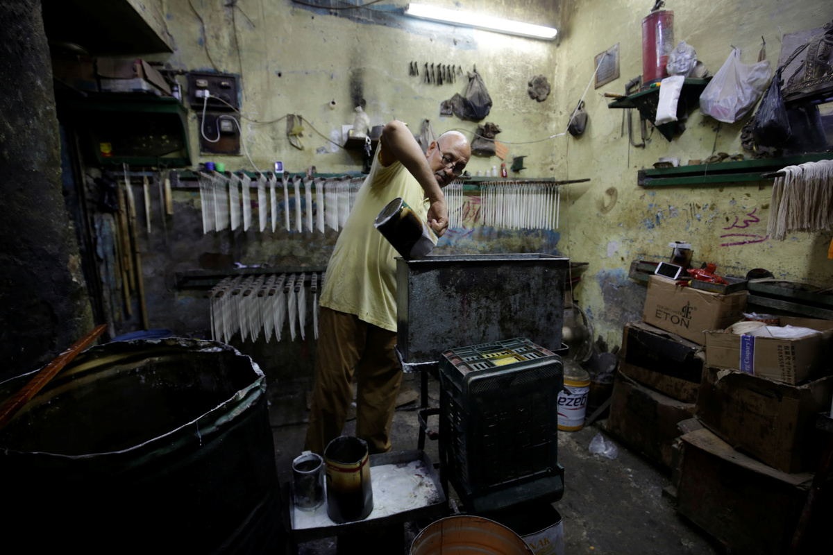 Now 60, Hussein is one of the last of a handful of candle makers in the al-Ghourya district, which was oncee bustling with workshops before cheap imports largely wiped them out.