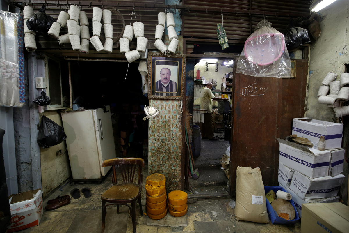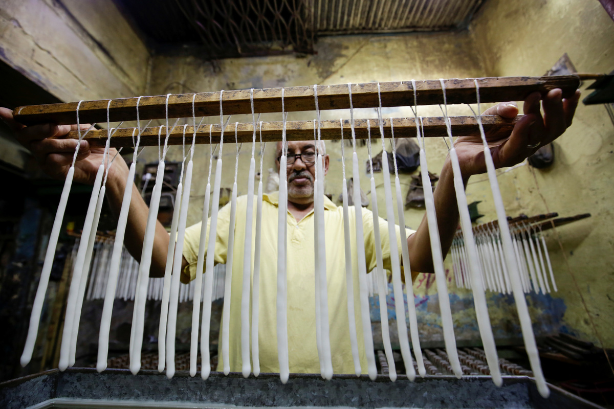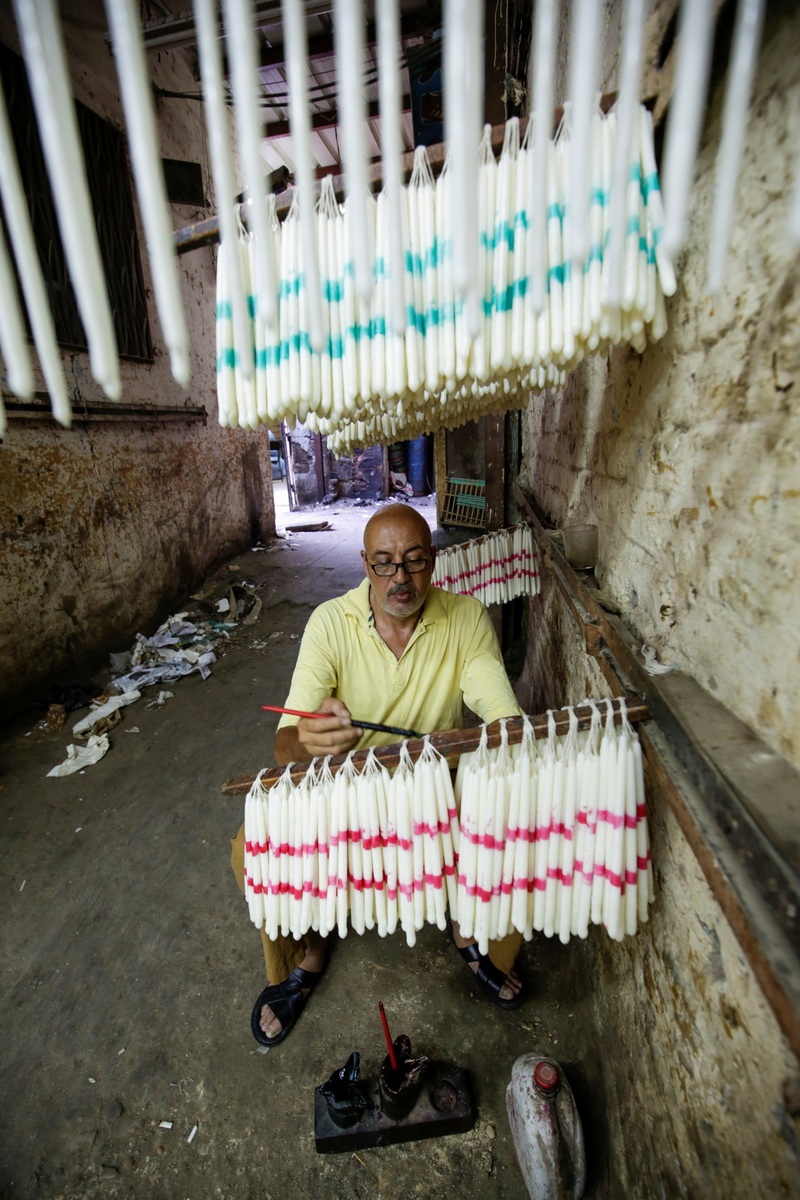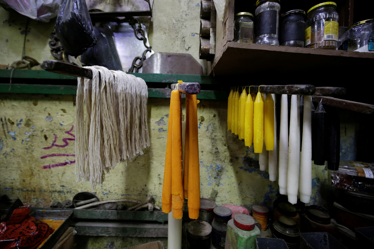 Haj Mohamed Hussein, 60, works in his workshop at al-Ghouria in old Islamic Cairo, Egypt, July 5, 2019. REUTERS/Hayam AdelHaj Mohamed Hussein, 60, works in his workshop at al-Ghouria in old Islamic Cairo, Egypt, July 5, 2019. REUTERS/Hayam AdelHaj Mohamed Hussein, 60, works at his workshop at al-Ghouria in old Islamic Cairo, Egypt, July 5, 2019. REUTERS/Hayam AdelAn Egyptian Coptic woman prays and lights a candle in front of a portrait of the Virgin Mary at the Orthodox church in Cairo, Egypt, July 5, 2019. REUTERS/Hayam AdelEgyptians walk in front of shops selling candles at Bab El Khalq street at al-Ghouria in old Islamic Cairo, Egypt, July 5, 2019. REUTERS/Hayam AdelHaj Mohamed Hussein, 60, pours molten wax into a tank as he makes candles, at his workshop at al-Ghouria in old Islamic Cairo, Egypt, July 5, 2019. REUTERS/Hayam AdelEgyptian Copts pray at the Orthodox church in Cairo, Egypt, July 5, 2019. REUTERS/Hayam Adel