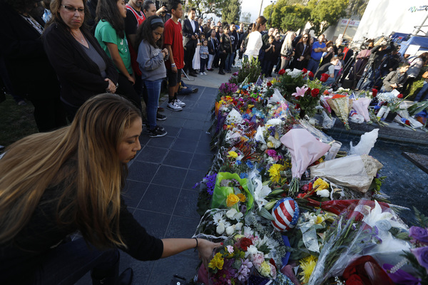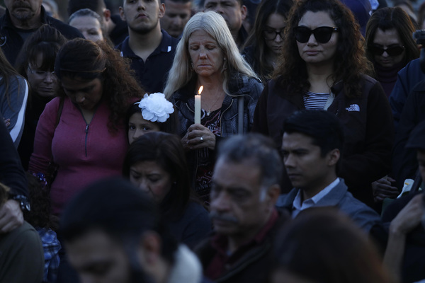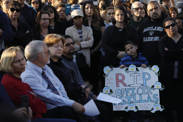 More than 300 mourners gathered outside Pomona police headquarters Sunday night for a candlelight vigil, where officers wore black mourning bands with the number "16" _ Casillas' badge number _ over their badges.