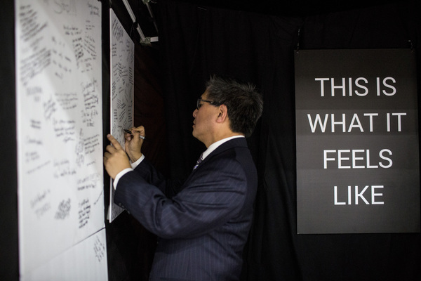 The catcalling came from a traveling art installation sponsored by Planned Parenthood, set up in an exhibition hall of the San Diego Convention Center, part of the California Democrats' annual confab that attracts thousands of delegates, politicians, lobbyists and activists. Nearly 1,000 men _ including the top candidates for governor _ walked through the interactive auditory exhibit meant to flip the script on the harassment women endure.