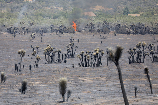 The fire's creep into the Antelope Valley, fed by low-lying desert shrubbery, also presents new challenges.
