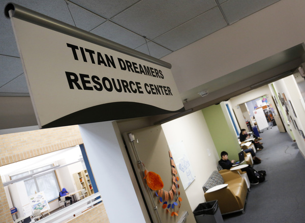 One oasis of support for such students is the Titan Dreamers Resource Center at California State, Fullerton, which opened in 2014 _ the first of eight such Cal State centers. On Monday, it was filled with students doing homework and bonding with classmates who shared their anxieties about the future.