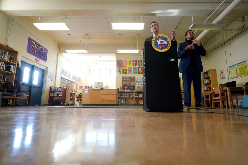 “We want to end this pandemic. We are all exhausted by it,” Newsom said during a news conference at a San Francisco middle school after visiting with seventh graders.