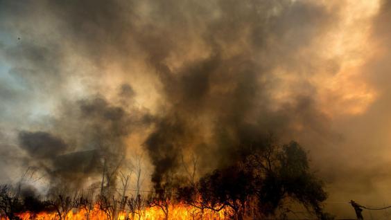 “What I’ve been told is that flames are currently ripping through my house,” said Mr Brady, a dockworker who lives on the outskirts of the evacuated town of Wrightwood. “I’m trying to remain optimistic. It’s the not knowing that’s the worst.”