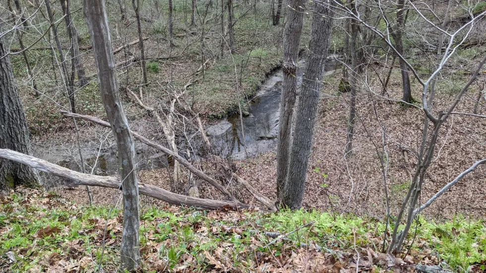 The bluffs above the streams are brutal. Somebody tied a heavy rope to a thick sapling to be able to climb down and up.