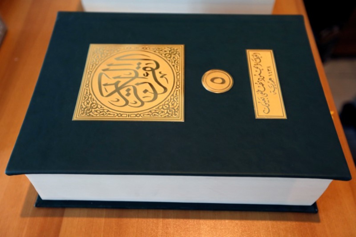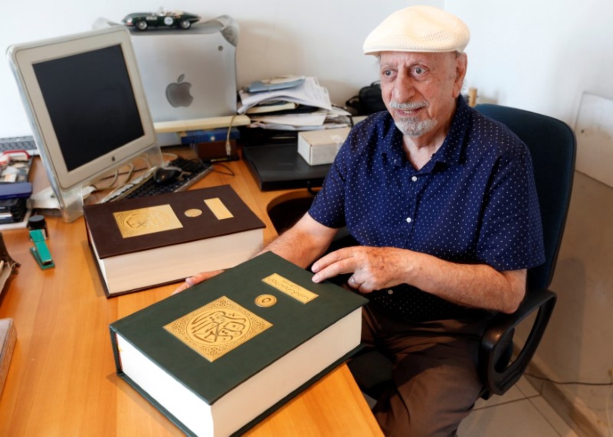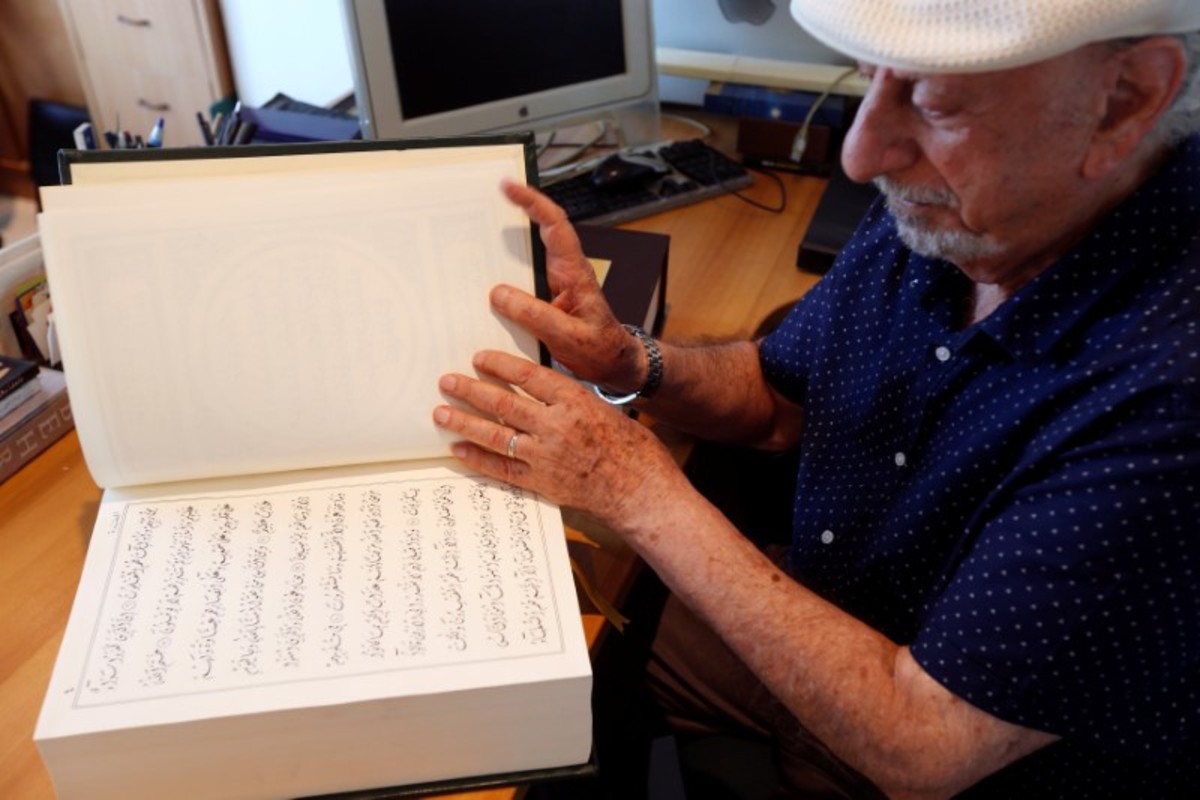 Lebanese calligrapher, Mahmoud Bayoun, displays the Koran (R) that he wrote in Diwani font, at his office in Beirut, Lebanon June 23, 2017. Picture taken June 23, 2017. REUTERS/Mohamed AzakirLebanese calligrapher, Mahmoud Bayoun, turns the pages of the Koran that he wrote in Diwani font, at his office in Beirut, Lebanon June 23, 2017. Picture taken June 23, 2017. REUTERS/Mohamed AzakirA view shows the Koran, written in Diwani font by Lebanese calligrapher Mahmoud Bayoun, at Bayoun's office in Beirut, Lebanon June 23, 2017. Picture taken June 23, 2017. REUTERS/Mohamed Azakir