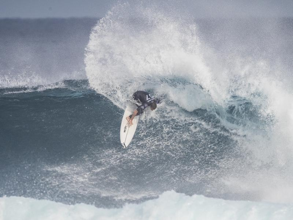 With an off-shore wind producing solid waves of almost two metres and some barrel rides, both surfers posted strong scores in the sixes to push their claims for a final four berth.