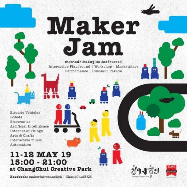At the festival, makers can join a dinosaur parade and workshop. Each dinosaur will be created from cartons and decorated with lights. Participants should bring their own cartons to make their own dinosaurs. The organiser will prepare a limited amount of glow sticks for participants. Beautiful decorative lights priced between 20 and 200 baht will be available at the event. The parade will start at 6.30 pm on both days.