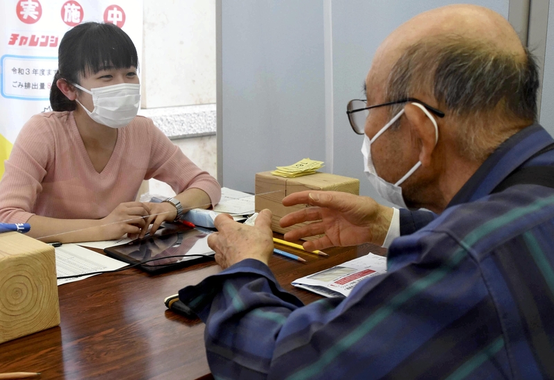 The Fukushima city government hired 23 people whose part-time income has been reduced amid the pandemic and assigned them to the city office and its branches to help 550 elderly people make reservations via tablet computers.