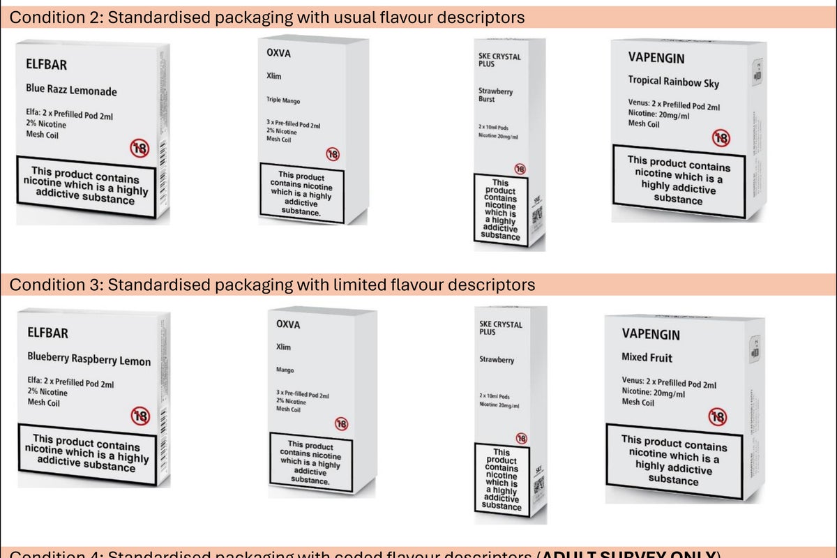 This comes as a study, spearheaded by researchers at UCL and King’s College London, assessed how standardised packaging and restricted flavour descriptions influenced the attractiveness of vape pods.