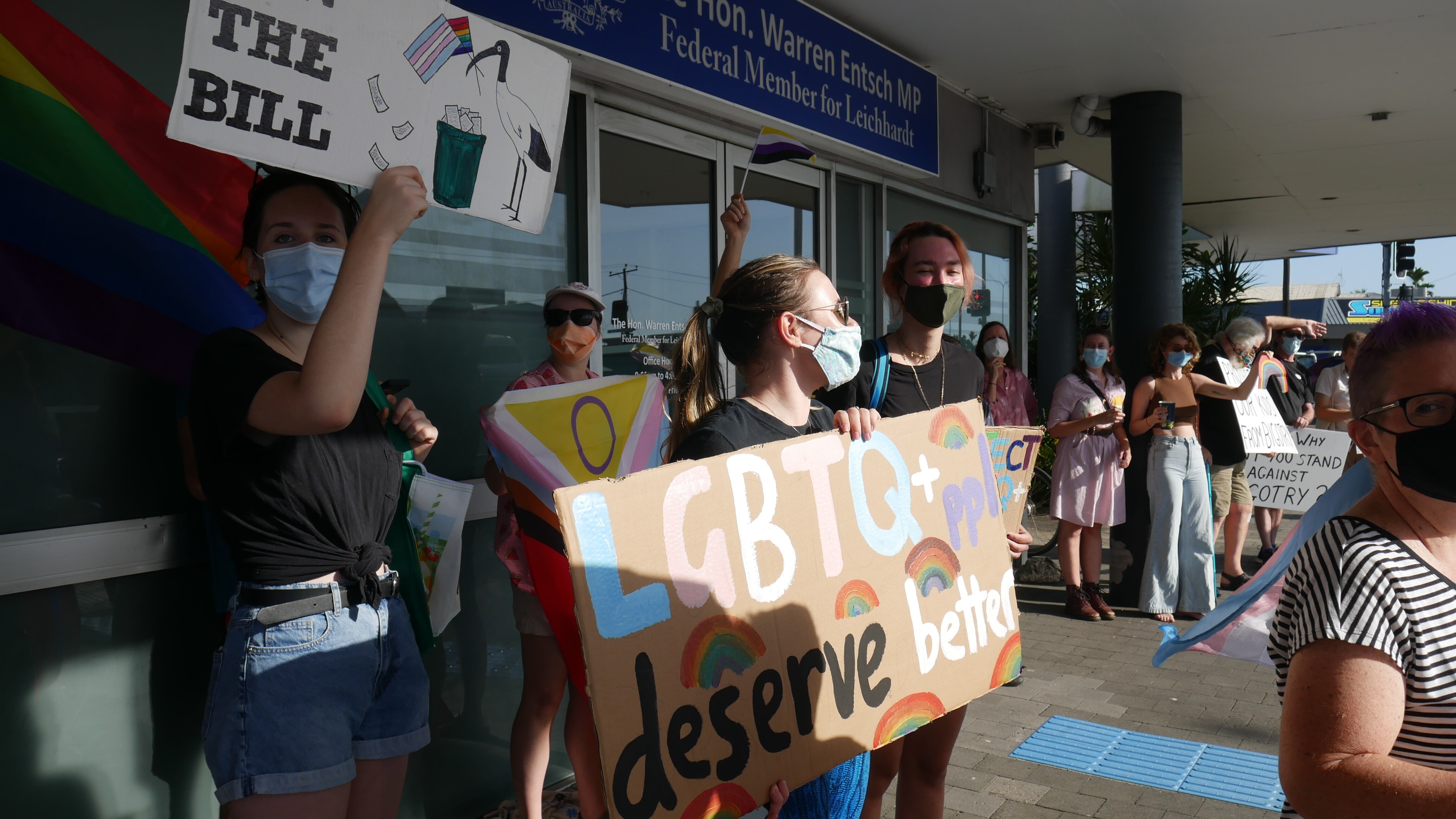 Stevie and his mum's concerns were echoed by protesters who gathered outside Warren Entsch's office in Cairns on Friday morning.
