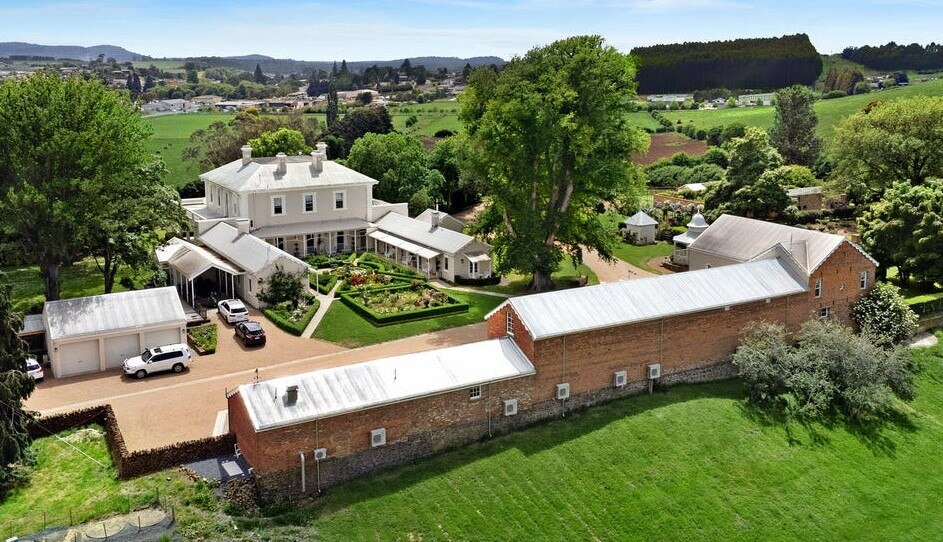 The 10-bedroom, 13-bathroom Woodbridge is one of the oldest mansions in Australia, located on the banks of the River Derwent in New Norfolk, a 40-minute drive from Hobart.