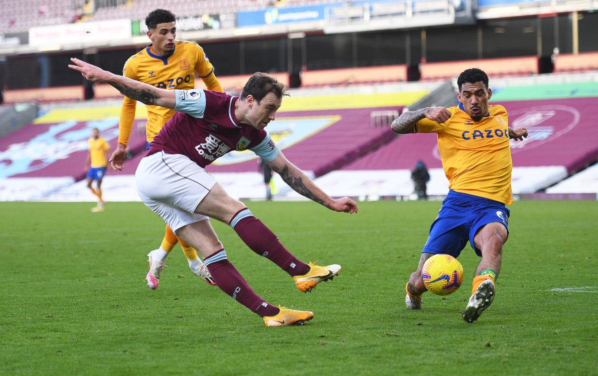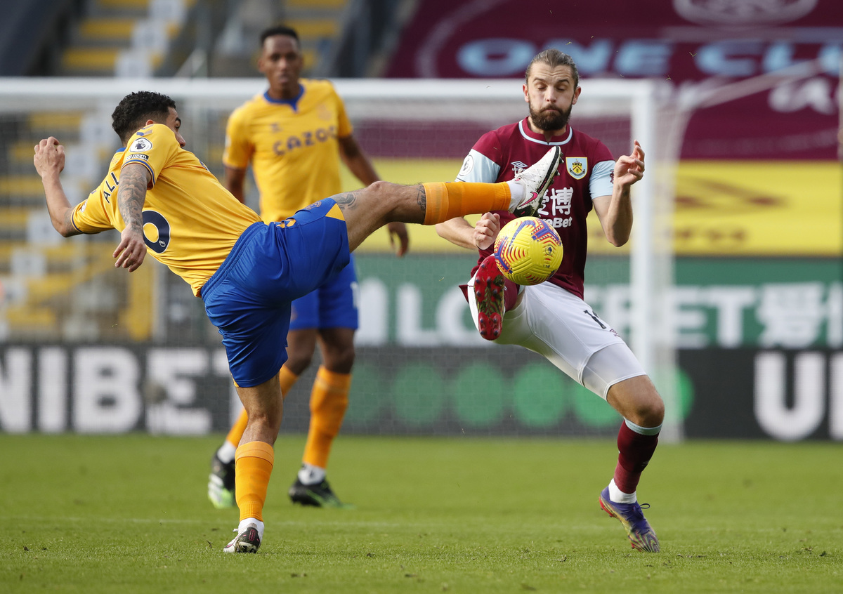 Everton had the alertness of Pickford to thank in the 41st minute when Dwight McNeil slipped Wood through but the keeper was out quickly to foil the Burnley striker.