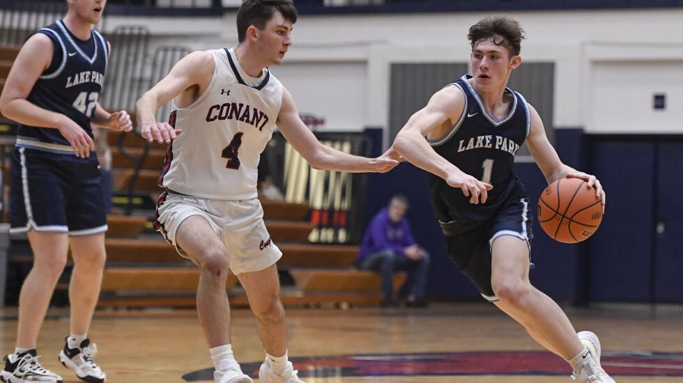 Senior Michael Walsh, who comes off the bench for Lake Park, is the son of Conant coach Matt Walsh.