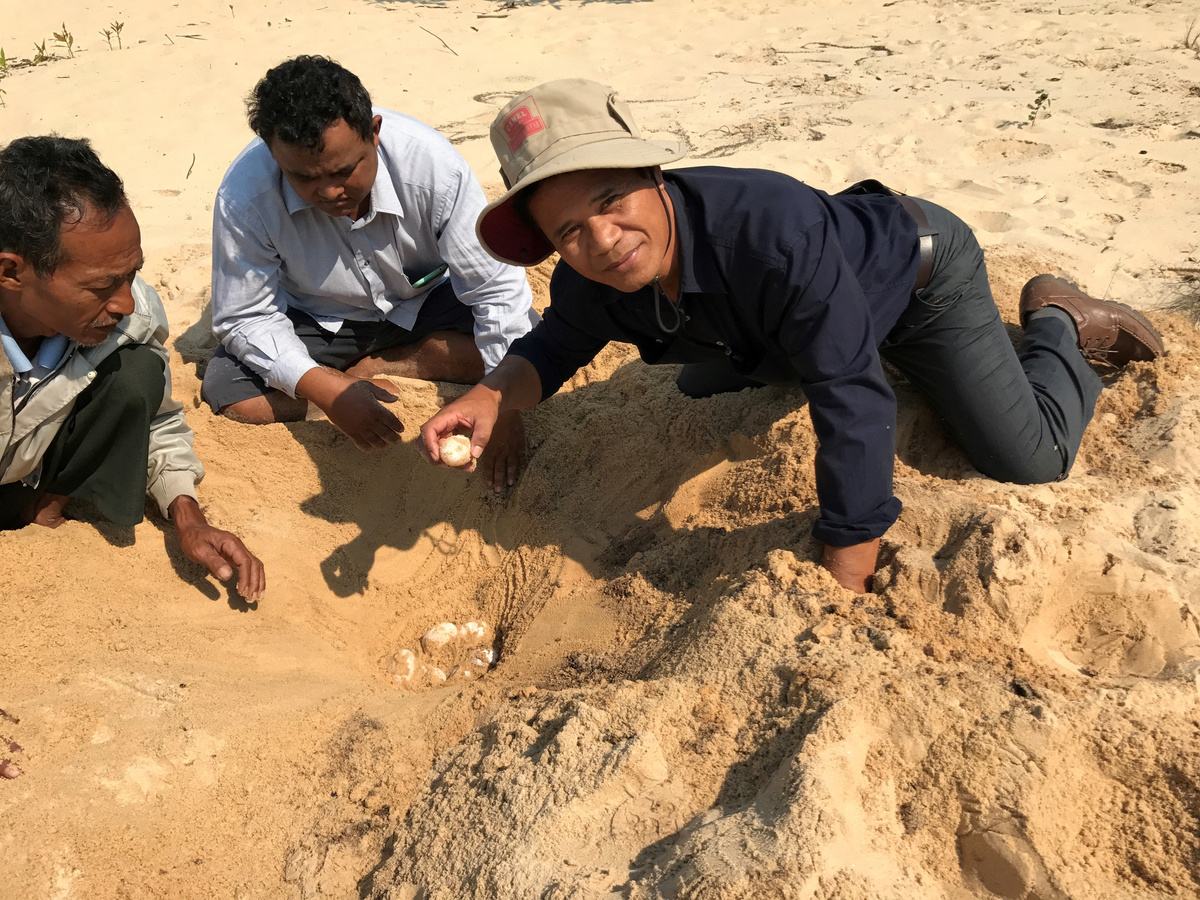 The Royal turtle eggs are found by members of the non-profit Wildlife Conservation Society (WCS) at Sre Ambel in Koh Kong province, Cambodia February 3, 2018. Picture taken on February 3, 2018. REUTERS/In hul/WCS Cambodia Handout via Reuters THIS IMAGE HAS BEEN SUPPLIED BY A THIRD PARTY.Members of the non-profit Wildlife Conservation Society (WCS) hold a Royal turtle eggs as they found at Sre Ambel in Koh Kong province, Cambodia February 3, 2018. Picture taken February 3, 2018. REUTERS/In hul/WCS Cambodia Handout via Reuters THIS IMAGE HAS BEEN SUPPLIED BY A THIRD PARTY.A member of the non-profit Wildlife Conservation Society (WCS) holds a Royal turtle egg as they found at Sre Ambel in Koh Kong province, Cambodia February 3, 2018. Picture taken on February 3, 2018. REUTERS/In hul/WCS Cambodia Handout via Reuters THIS IMAGE HAS BEEN SUPPLIED BY A THIRD PARTY.