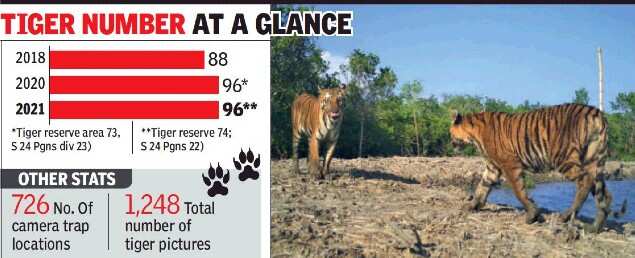 KOLKATA: The tiger population in the Indian Sunderbans has remained stable in the past one year. A day before the Global Tiger Day on July 29, state forest minister Jyotipriya Mullick released the report, saying that the mangroves is home to 96 tigers, as per the camera trap exercise undertaken by the state forest department between December 2020 and February 2021 — also known as the Phase IV estimation.