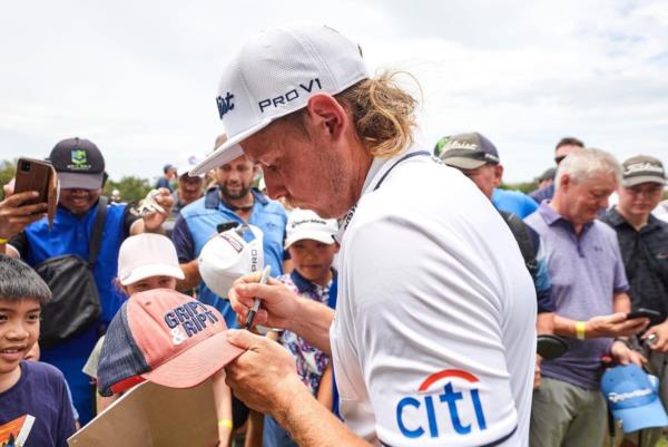 A recent social media post by Cameron Smith has garnered attention from fans and followers alike. The Australian golfer shared a heartwarming picture of himself signing autographs for a group of enthusiastic supporters. The image not only showcases Smith's popularity but also his genuine appreciation for those who have been cheering him on.