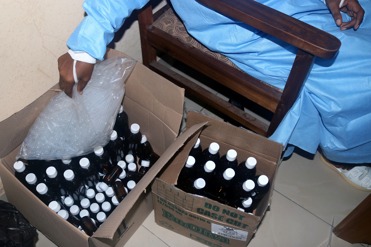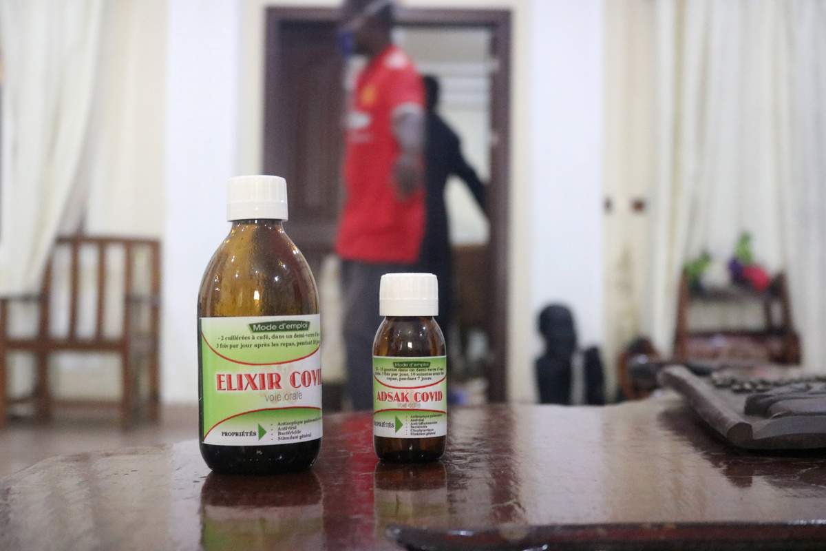 Archbishop Samuel Kleda of Douala diocese, who has practiced herbal medicine for several years, declined to give the composition of the two products, called "Elixir Covid" and "Adsak Covid".