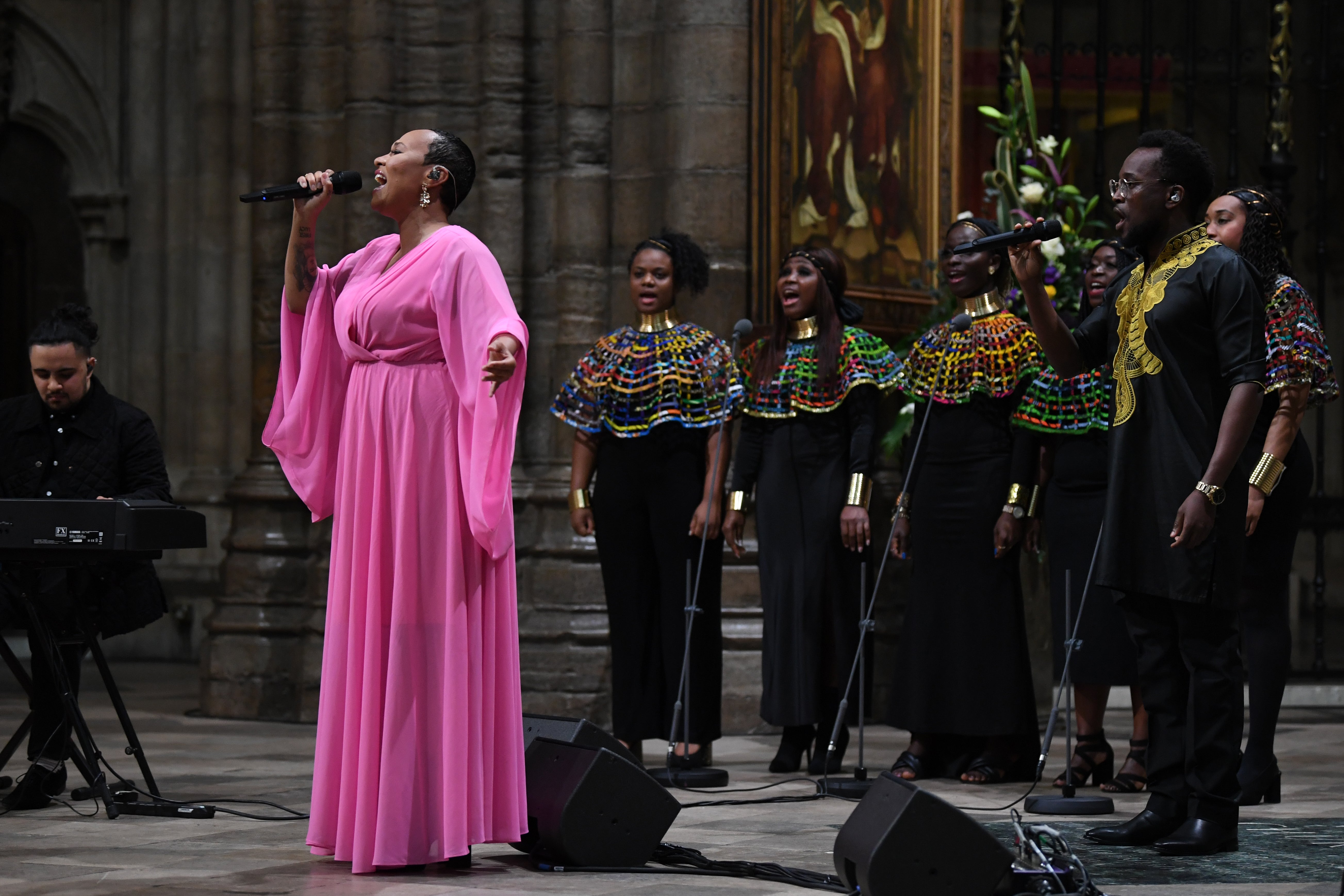 Among the group were performers from the Commonwealth Day service held earlier at Westminster Abbey including Mica Paris and Emeli Sande.